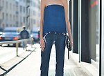 다리가 짧아 보이지 않게 데님스커트의 길이만 잘 맞춰 코디한다면 올 여름 심플한 복고스타일로 멋지게 코디할 수 있는 스트릿스타일 모습이다.