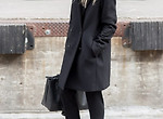해외패션블로거 스텔라가 제안하는 진한회색 롱 카디건 코디방법이다. 그녀는 루즈한 핏의 블랙 롱원피스에 카디건을 레이어드하여 지적이면서 우아한 데일리룩 스타일을 연출하였다.