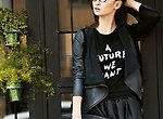 화이트 데님진에 블랙 가죽 자켓을 코디하여 매니시 스타일로 코디한 모습이다. 봄간절기 시즌에 참고해보면 좋은 스타일이다.롤업된 데님진에 운동화 뿐만 아니라 엥클 부츠, 엥클 스트랩 등 매칭하여도 좋다.