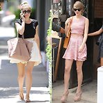 케이트 허드슨 (Kate Hudson)의 데일리룩코디 케이트 허드슨은 여름 데일리룩 아이템으로 가죽 플리티드 스커트를 선택하였으며 무더운 날씨를 고려하여 상의를 크롭탑으로 코디하여 러블리하면서 시크하게 여름데일리룩 스타일을 완성하였다. 특히 화이트 힐의 코디는 클래식한 스타일에 도시감성적 시크함을 연출하기에 충분 하다. Kate Hudson leaving her hotel in New York on May 19, 2014 ※ Get the Look Maison Martin Margiela Pleated Skirt, $2263.12 J.W. Anderson Plain Butterfly Top, $690.00 Dolce & Gabbana Pointed Toe Pumps, $595.00